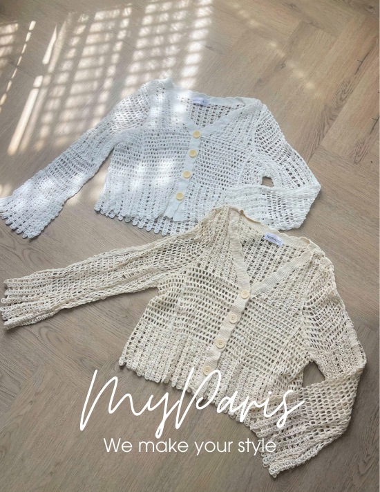 Áo cardigan ren lưới phối nút chính hãng MYPARIS